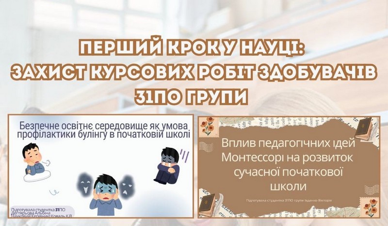 16 грудня здобувачі першого (бакалаврського) рівня вищої освіти 31ПО групи спеціальності 013 Початкова освіта факультету психолого-педагогінчої освіти та мистецтв БДПУ презентували результати курсових робіт з педагогічних технологій в початковій школі (наукові керівниці: докторка філософії, доцентка Надія Діра та асистентка кафедри педагогіки Карина Коваль), у яких було висвітлено актуальні й перспективні аспекти розвитку сучасної освіти.