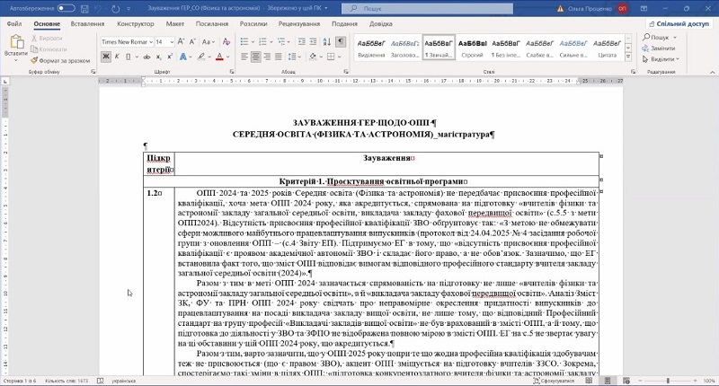 У межах діяльності Школи гарантів відбулася робоча зустріч, присвячена аналізу та обговоренню рекомендацій, наданих галузевою експертною радою та експертною групою за результатами акредитації освітніх програм. Захід провела Гуренко Ольга Іванівна – докторка педагогічних наук, професорка кафедри соціальної роботи та інклюзивної освіти, перша проректорка. Під час зустрічі було розглянуто досвід акредитації освітніх програм “Хореографія” (бакалаврський рівень) та “Середня освіта (Фізика та астрономія)” (магістерський рівень), що дало змогу проаналізувати підходи до побудови освітньої програми, організації її змістового наповнення та документального супроводу.