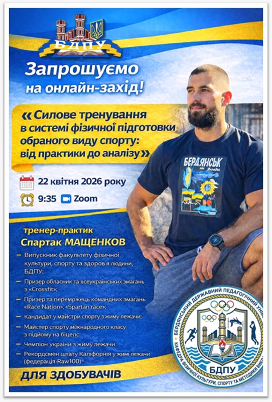22 квітня 2026 року в межах проходження виробничої практики для здобувачів освіти відбулася зустріч на тему «Силове тренування в системі фізичної підготовки обраного виду спорту: від практики до аналізу».