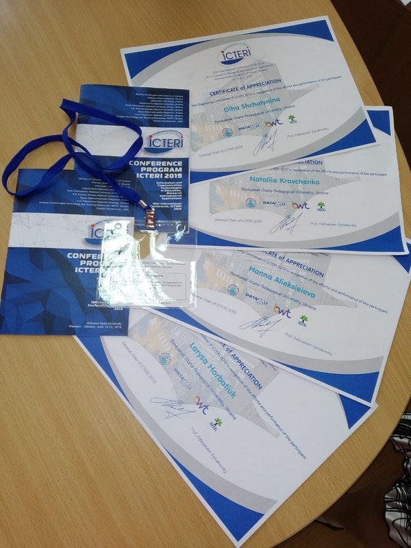Активну участь у роботі конференції брали доценти кафедри комп’ютерних технологій в управлінні та навчанні й інформатики Бердянського державного педагогічного університету Ганна Алєксєєва, Лариса Горбатюк, Наталя Кравченко, Ольга Щетиніна. З доповідями, представленими на конференції, можна ознайомитися на сайті ІСTERI-2019 ХV Міжнародна науково-практична конференція «Інформаційно-комунікаційні технології в освіті, дослідженнях та індустріальних додатках»
