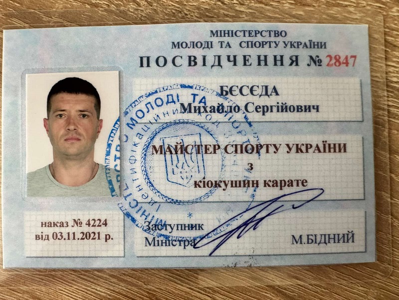 Mykhailo works as a Kyokushin Karate coach at the Okinawa Club, which is part of the Kyokushinkai Karate Federation of the city of Dnipro of the National Kyokushin Karate Federation of Ukraine. He is a Master of Sports of Ukraine in Kyokushin Karate and holds a second-degree black belt (2nd Dan).