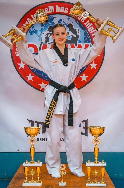 На чемпіонаті Європи з таеквондо, що відбувся у швейцарському Давосі, яскраво проявила себе 17-річна Олександра Яворщук. У складі команди школи таеквондо Song’s Taekwon-Do спортсменка продемонструвала винятковий результат, здобувши три золоті та одну бронзову медаль.