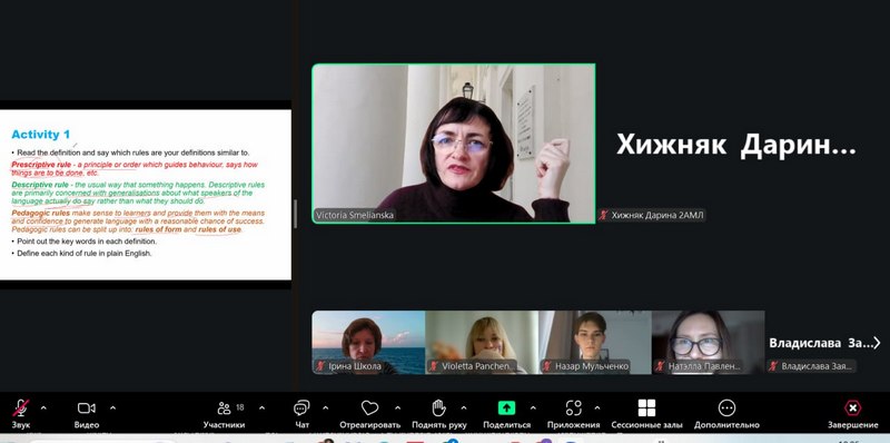 The lecture was delivered by Victoria Smelianska, PhD, Associate Professor at the Department of Foreign Languages and Teaching Methods, Nizhyn Mykola Gogol State University.