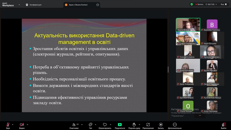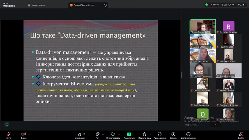 During the lecture, participants discussed current trends in the development of education management systems based on analytical data. The speaker emphasized that data-driven management is not only an innovative approach but also a new management culture that relies on evidence, expertise, and measurable indicators of effectiveness.
