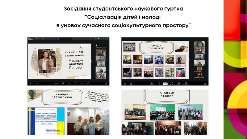 У межах засідання студентського наукового гуртка “Соціалізація дітей та молоді в умовах сучасного соціокультурного простору” (19 березня) (керівниця — доцентка Наталя Захарова), завдяки  новому формату роботи — рубриці “Давайте знайомитися: викладач — науковець”, який успішно себе зарекомендував серед студентства, майбутнім соціальним працівникам випала унікальна можливість глибше пізнати науковий потенціал викладачів кафедри через їхні особисті та професійні історії.
