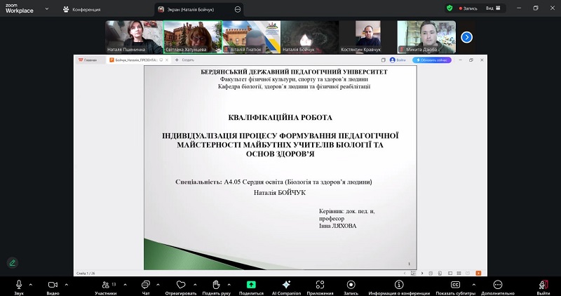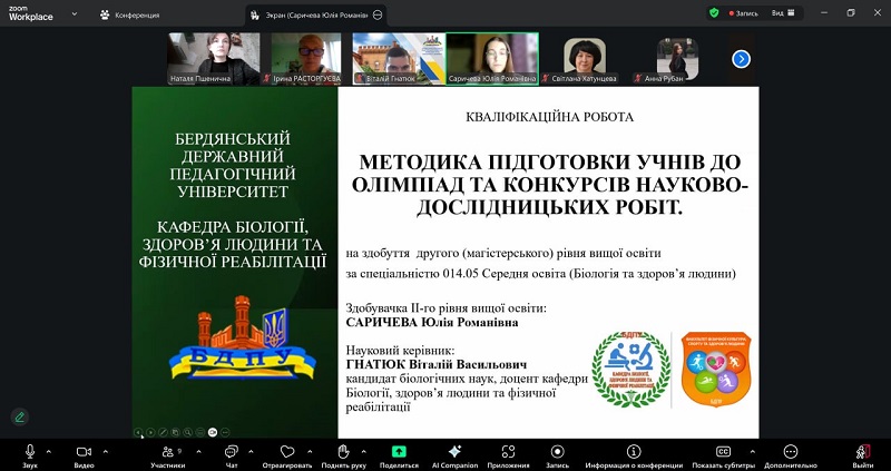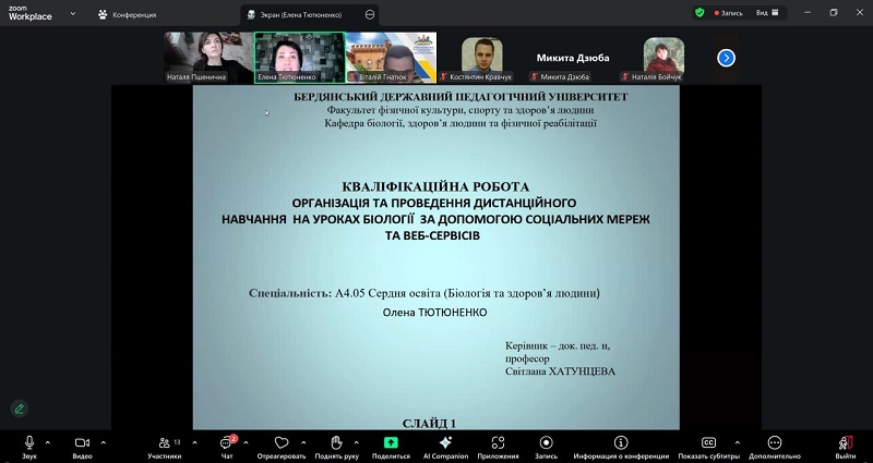 12-17 грудня на кафедрі біології, здоров’я людини та фізичної реабілітації факультету фізичної культури, спорту та здоров’я людини проходив захист кваліфікаційних робіт здобувачів другого (магістерського) рівня вищої освіти денної і заочної форм навчання за предметною спеціальністю 014.05 Середня освіта (Біологія та здоров’я людини).