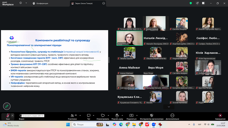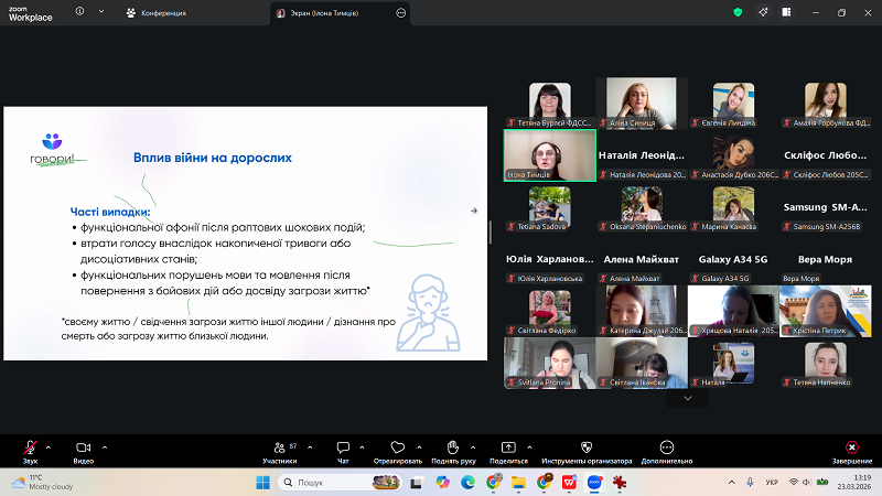 Особливу увагу було приділено розмежуванню функціональної (психогенної) та органічної невербальності, що має важливе значення для правильної діагностики та вибору ефективних стратегій супроводу. Учасники мали змогу ознайомитися з клінічним випадком, який ілюструє вплив війни як потужного психотравмувального чинника на виникнення мовленнєвих порушень.