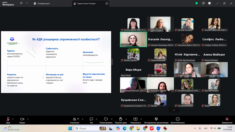On March 23, 2026, a webinar was held within the framework of the activity plan of the Competence Center for Inclusive Education at Berdyansk State Pedagogical University, organized in cooperation with the NGO “Govory!”. The event brought together the academic and teaching community, specialists in the field of special and inclusive education, psychologists, and all those interested in speech development and supporting individuals with communication difficulties.