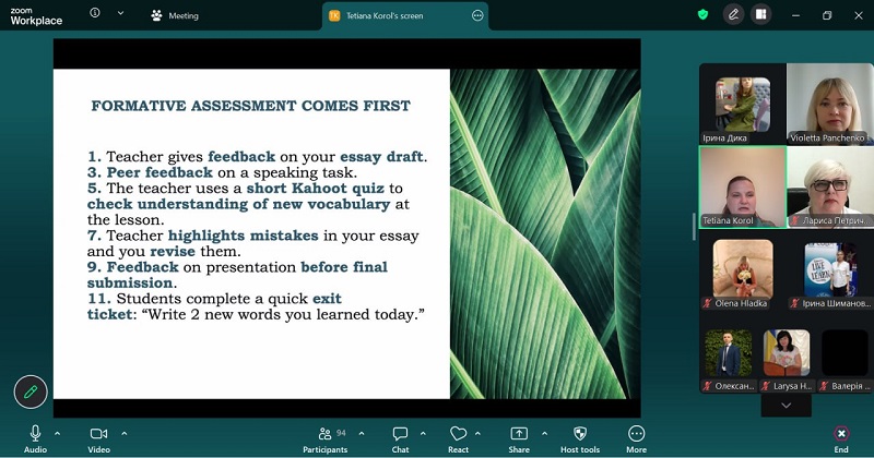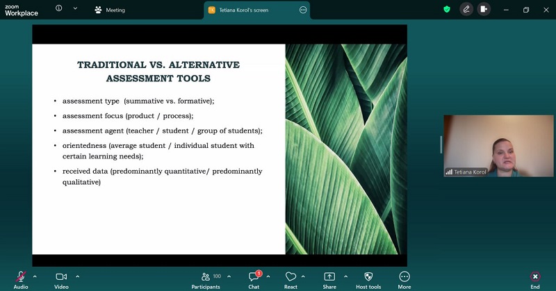 Лекторка надала практичні інсайти, які педагоги можуть одразу застосувати на заняттях з англійської мови, щоб зробити оцінювання більш змістовним, орієнтованим на студента та ефективним.