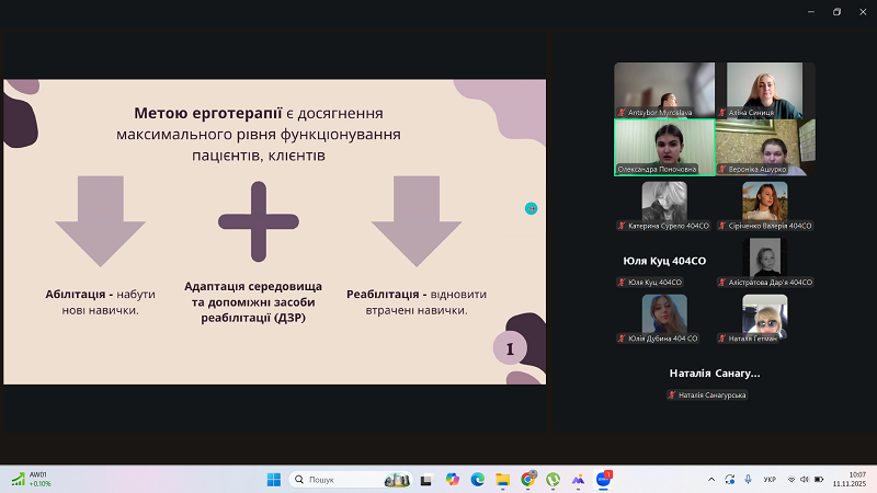 On November 11, 2025, an occupational therapist from the municipal non-profit association “Nikopol Medical Specialized Center for Medical and Social Rehabilitation of Children” of the Dnipropetrovsk Regional Council – Oleksandra Ponochovna was invited to the educational process.