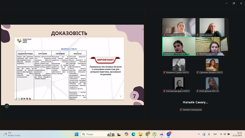 Applicants at the first (bachelor’s) level of higher education demonstrated their interest in the guest lecturer through questions and discussions on the outlined topic. The meeting ended with the definition of the trajectory of further cooperation, as well as words of gratitude to Oleksandra for the practice-oriented, evidence-based information in the context of studying the educational component.