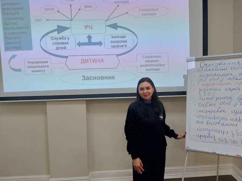Тренінг був спрямований на підвищення рівня компетентності щодо впровадження принципів інклюзивного навчання, партнерства з освітніми закладами та створення безбар’єрного середовища для дітей з особливими освітніми потребами.
