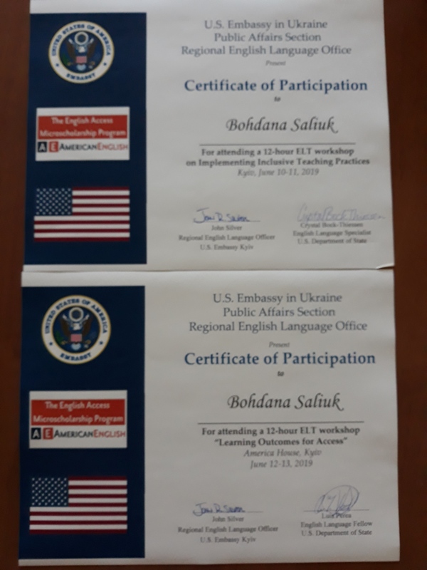 Так, з 10 по 13 червня у культурному центрі America House командою RELO та U.S. Embassy Kyiv було організовано і проведено чотириденний тренінг «Inclusive Teaching Practices / Learning Outcomes for ACCESS» для викладачів Access з міст-учасників програми – Одеси, Ізмаїла, Бердянська, Бахмута, Сєверодонецька, Слов’янська, Краматорська, Маріуполя, Житомира, Харкова, Берегова, Києва, Миколаєва, Запоріжжя. Access Berdiansk представила доцент кафедри іноземних мов і методики викладання БДПУ і викладач програми Богдана Салюк.