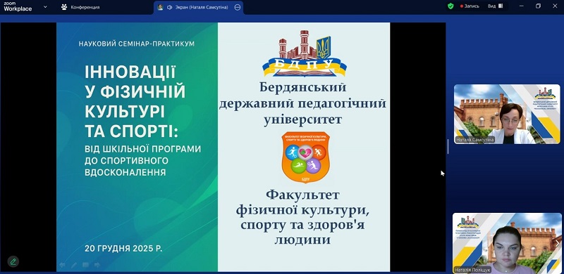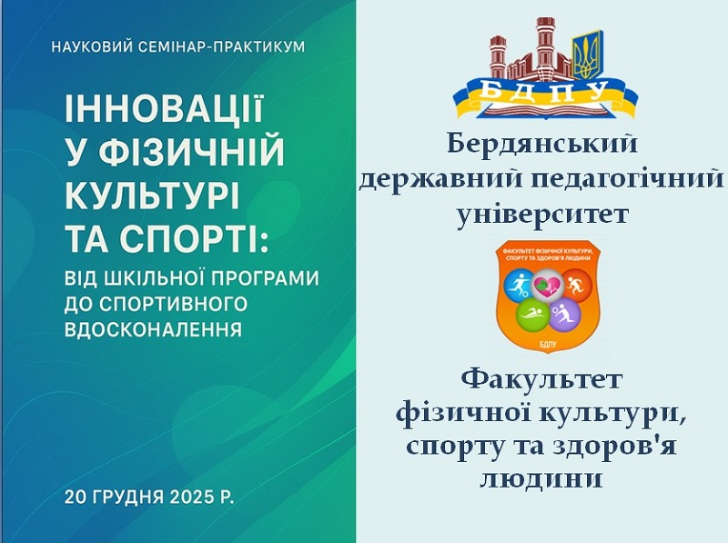On December 20, 2025, a scientific seminar-practicum “Innovations in Physical Culture and Sports: from School Curriculum to Sports Improvement” was held at the Berdyansk State Pedagogical University at the Faculty of Physical Culture, Sports and Human Health, organized by the Department of Physical Culture, Sports and Teaching Methods.