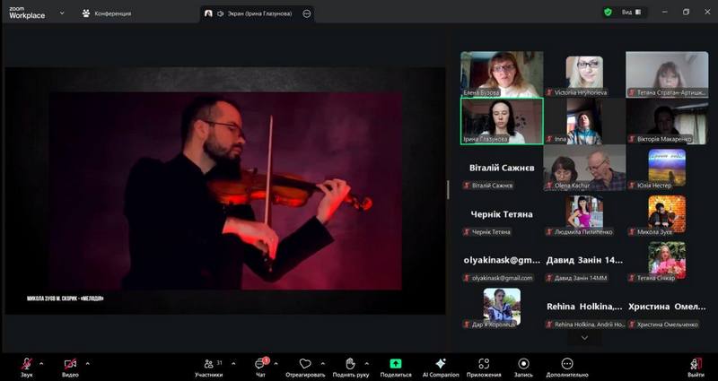 Звісно, враховуючи спеціальність А4 (Мистецтво. Музичне мистецтво), ця кураторська година була наповнена музичною мелодією. Саме звучання безсмертної “Мелодія” М. Скорика, яку своєю грою на скрипці виконав Микола Зуєв, занурило всіх присутніх у атмосферу пам’яті, скорботи та глибокого розуміння трагедії, допомогло відчути біль і незламність тих, хто пережив ці страшні події.