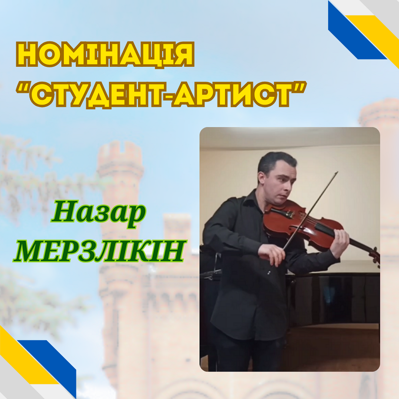 🏆 Переможцем у номінації «Студент-артист» став Назар Мерзлікін, здобувач другого (магістерського) рівня вищої освіти м23ММ групи спеціальності 014 Середня освіта (Мистецтво. Музичне мистецтво). Його талант захоплює, а майстерність вражає до глибини душі. 🎻✨