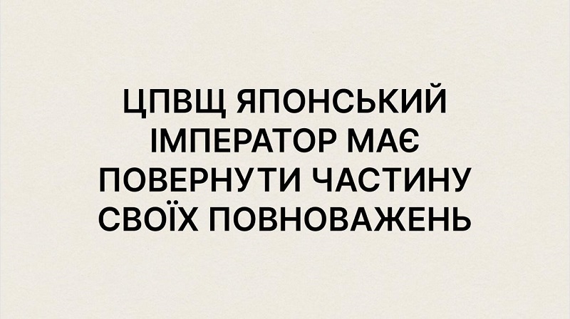 - ЦПВЩ японський імператор має повернути частину своїх повноважень;