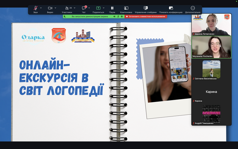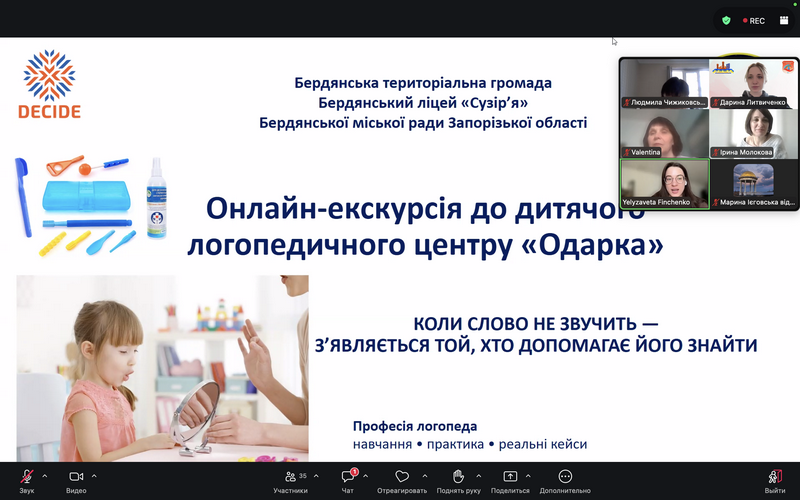 A career guidance online excursion to the children’s space of the center “Odarka” was held for students in grades 8–11 of the Berdyansk Lyceum “Suzir’ya” of the Berdyansk City Council of the Zaporizhia region.