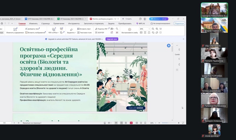 The event brought together lecturers from Berdiansk State Pedagogical University and Poltava National Pedagogical University named after V.G. Korolenko. During the meeting, the following bachelor’s degree programmes were discussed: “Secondary Education (Biology and Human Health. Physical Rehabilitation)‘, and master’s level: ’Secondary Education. Biology and Human Health”. The format of open professional dialogue allowed for a thorough analysis of the content of the programmes, the identification of areas for improvement, and the coordination of prospects for further development in line with current educational challenges.