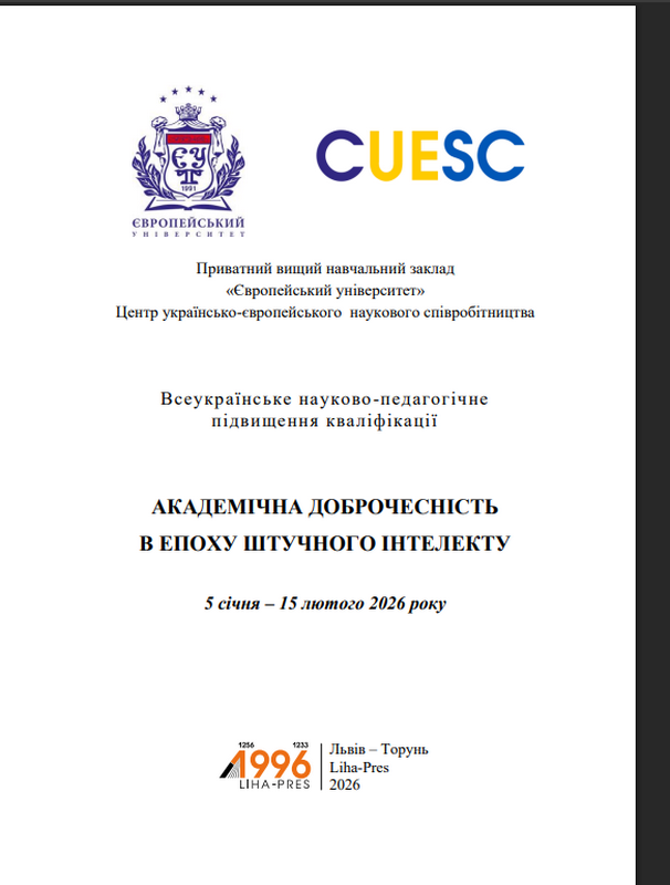 Участь у зазначеному заході стала вагомою складовою професійного розвитку та науково-педагогічного вдосконалення, оскільки програма підвищення кваліфікації була спрямована на осмислення сучасних викликів, пов’язаних із дотриманням принципів академічної доброчесності в умовах стрімкого розвитку цифрових технологій та активного впровадження інструментів штучного інтелекту в освітню й наукову діяльність.
