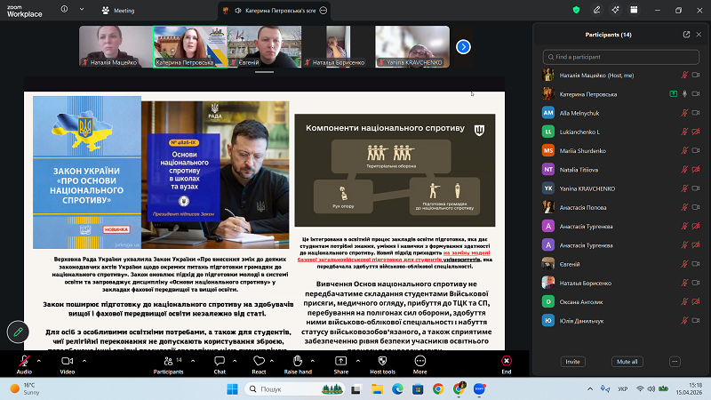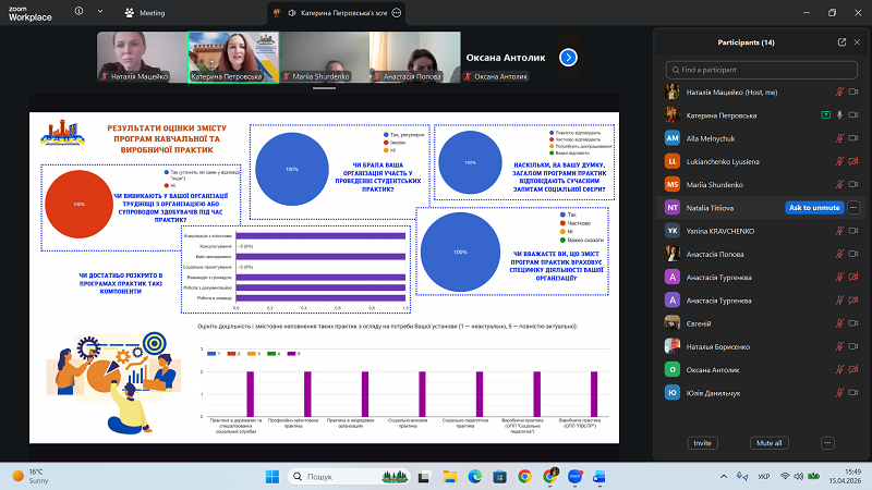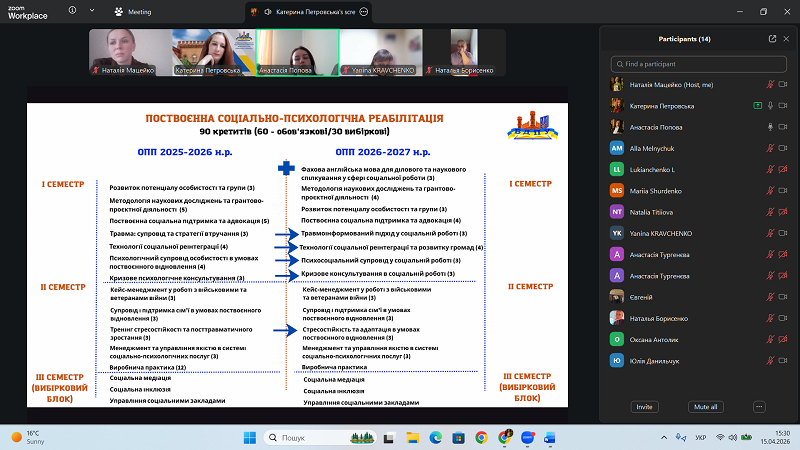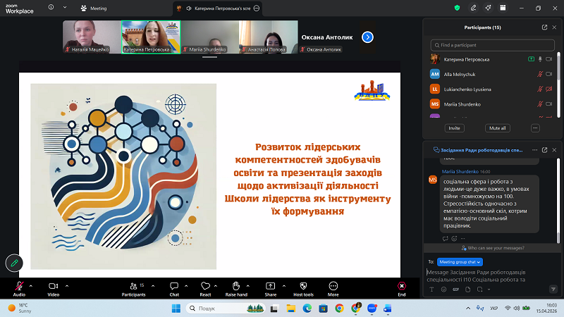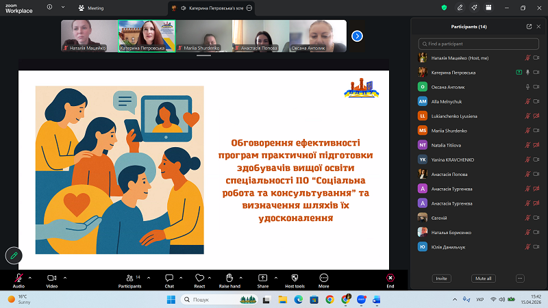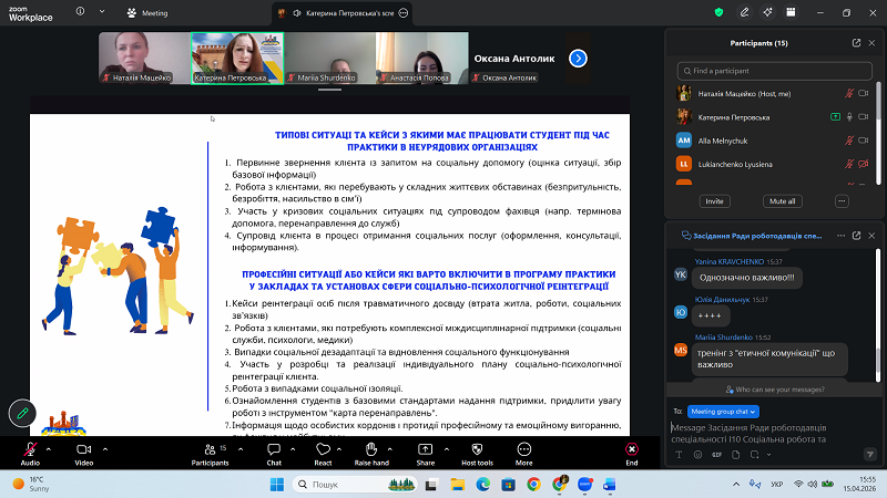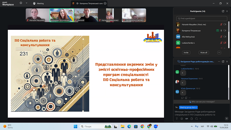 On April 15, a scheduled meeting of the Employers’ Council for Specialty I10 Social Work and Counseling was held. The event served as an important communication platform for constructive dialogue between representatives of the academic community and stakeholders from various regions of Ukraine.