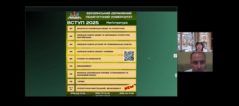 23 грудня 2025 року у межах профорієнтаційної роботи з учнями шкіл Запорізької області кафедра історії та філософії Бердянського державного педагогічного університету за участі декана факультету та заступника декана з виховної роботи провела культурно-просвітницький захід «Багатоманітність різдвяних традицій Запорізького краю», спрямований на формування усвідомленого інтересу молоді до освітніх програм соціально-гуманітарного спрямування.