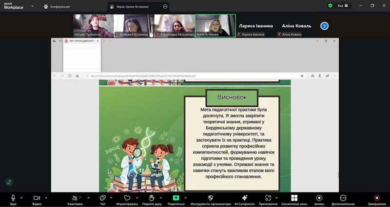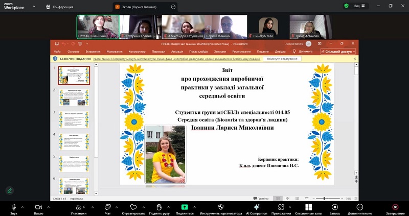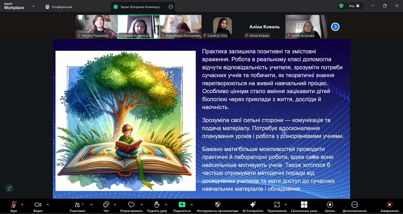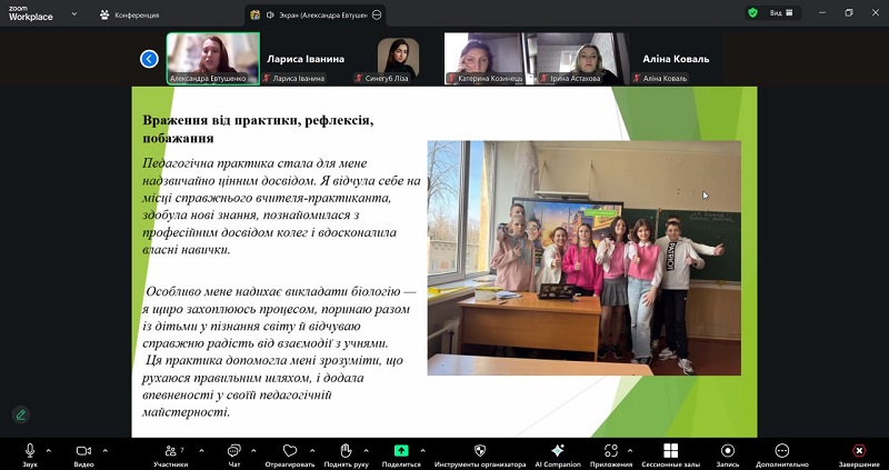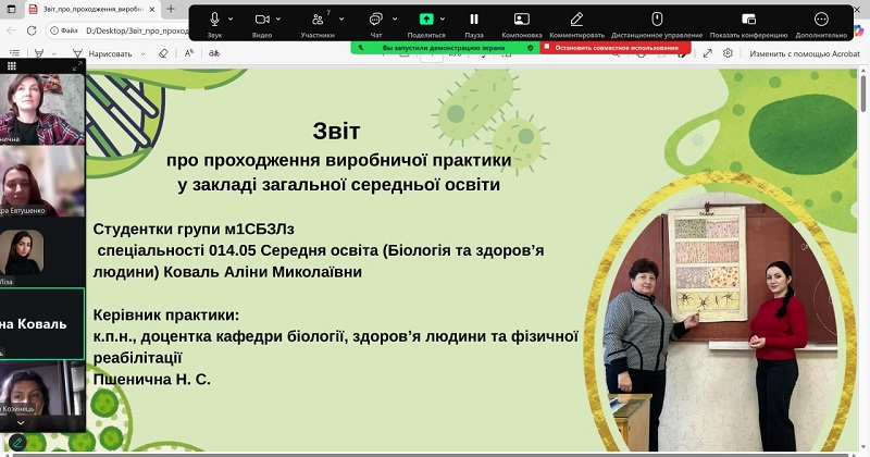 Під час звітної конференції здобувачі поділилися досвідом, отриманим під час проходження практики. Студенти відвідували уроки досвідчених вчителів, розробляли та проводили власні уроки та виховні заходи з біології, основ здоров’я та інтегрованих курсів природничої освітньої галузі.