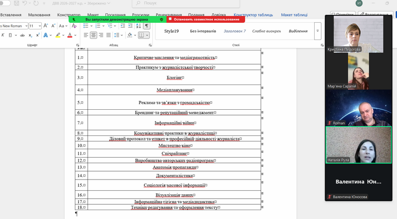 One of the key aspects of the meeting was a professional analysis of the educational program “Journalism”. As a representative of stakeholders and practitioners with many years of experience, Mariana Sarapii joined the discussion of the fullness of the educational disciplines.