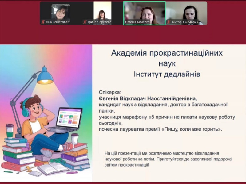 Незвичний формат заходу сприяв невимушеній атмосфері, заохоченню учасників до обговорення важливої теми, усвідомленню того, що схильність до постійного відкладання важливих і термінових справ заважає людям бути по-справжньому успішними, але якщо захотіти, завжди можна попрацювати над собою і перейти від людини прокрастинатора до людини успішної.
