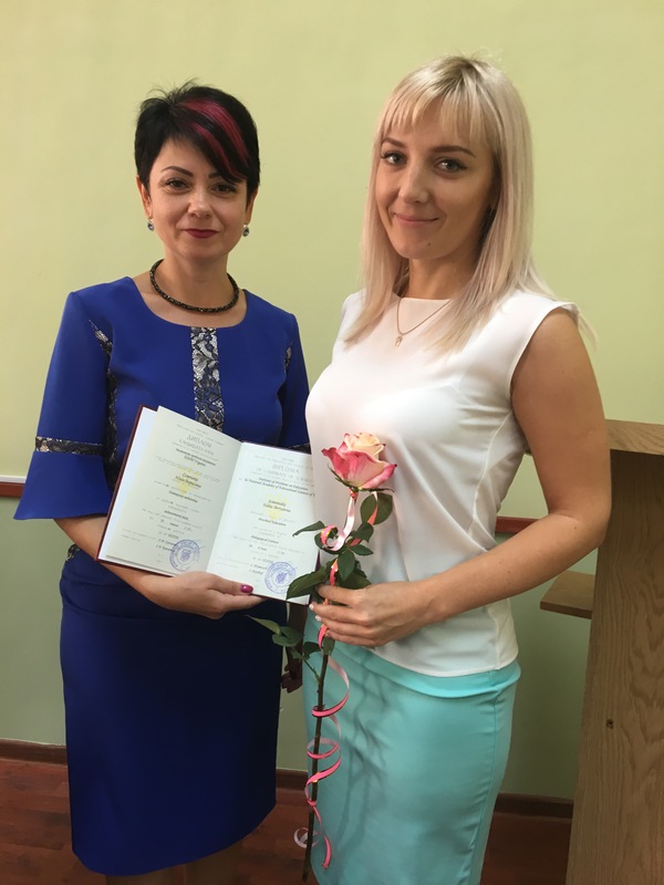 10 вересня на оперативній нараді перша проректорка проф. Ольга Гуренко вручила диплом кандидата філологічних наук Герасименко Юлії Андріївні (факультет філології та соціальних комунікацій), диплом кандидата педагогічних наук Семеняко Юлії Борисівні (факультет дошкільної, спеціальної та соціальної освіти), атестат доцента Розумній Тетяні Сергіївні.
