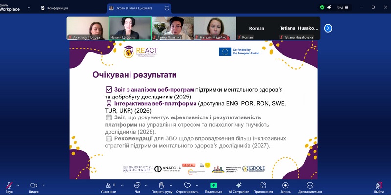 This year, Berdyansk State Pedagogical University (BSPU) became part of the European celebration, presenting its own contribution to strengthening academic resilience. As part of the event, the university team held an online presentation entitled “ReACT for a Resilient Academic Community: Mental Health and Psychological Flexibility in Times of Crisis,” which took place on October 16, 2025. The event brought together lecturers, PhD students, and researchers interested in the topic of mental health in academia.