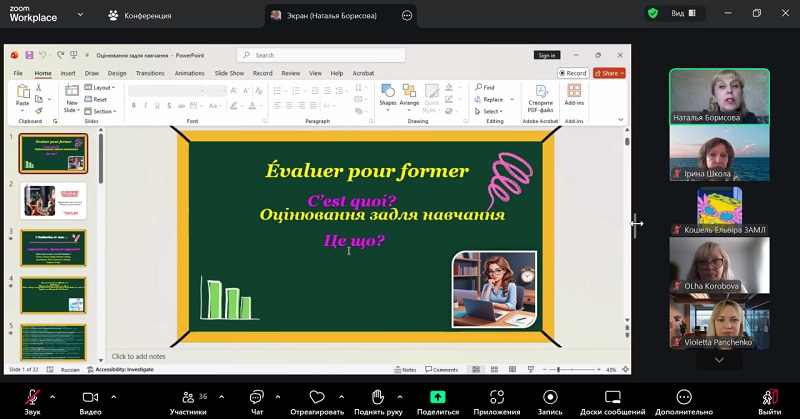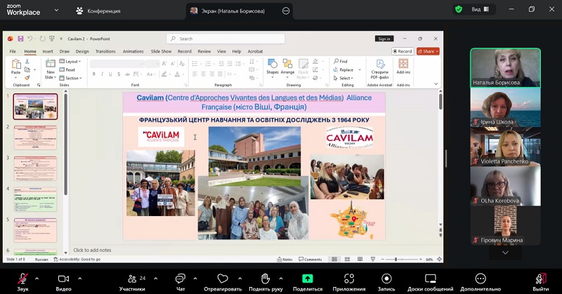 The seminar was prepared and delivered by Natalia Borysova — a senior methodologist teacher of the highest category at Berdyansk Gymnasium No. 11 and a participant in the international in-service training programme for French language teachers ‘Cavilam’ (Vichy, France).