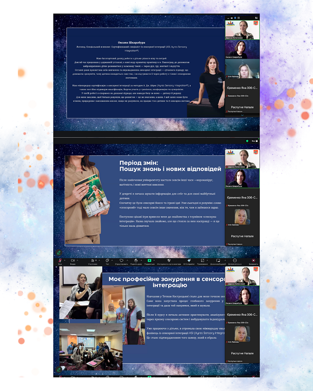 As part of the rubric “PPL — Advice from Practicing Speech Therapists,” the team of “Student Desant S016” organized a special meeting that became a true bridge between academic learning and future professional activity. This time, students had the opportunity to speak with a person who not only possesses deep theoretical knowledge but also applies it daily in her practice — Oksana Shkarabura, a certified ASI sensory integration specialist and the founder of the children’s developmental space “Sensory Space.”