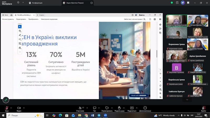 Проведений захід сприяв поглибленню розуміння значення соціально-емоційного навчання в контексті реалізації ідей Нової української школи та окреслив практичні орієнтири щодо інтеграції відповідних підходів у педагогічну діяльність.