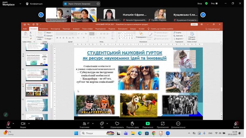 On November 19, the student research club “Socialization of Children and Youth in the Context of the Modern Sociocultural Space” (supervised by Associate Professor Nataliia Zakharova) officially opened a new season of meetings with students of the educational programs offered by the Department of Social Work and Inclusive Education.
