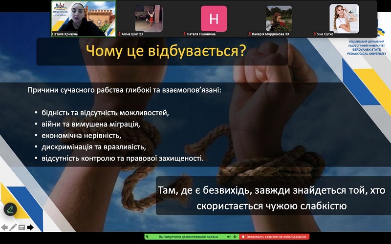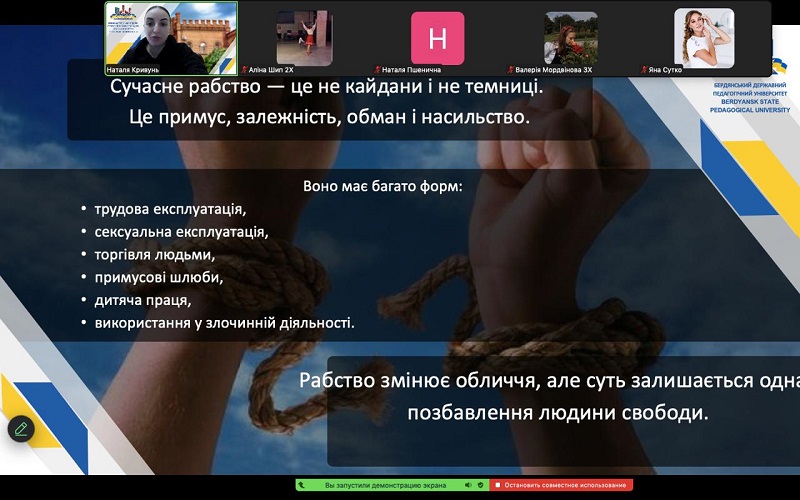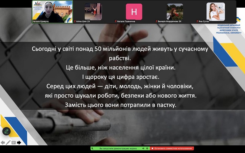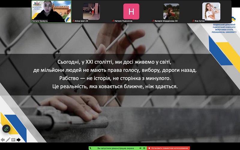 On the occasion of the World Day for the Abolition of Slavery, on December 2, 2025, the Faculty of Physical Culture, Sports and Human Health of Berdyansk State Pedagogical University held an online educational event titled “Modern Slavery: Awareness as a Means of Prevention.”