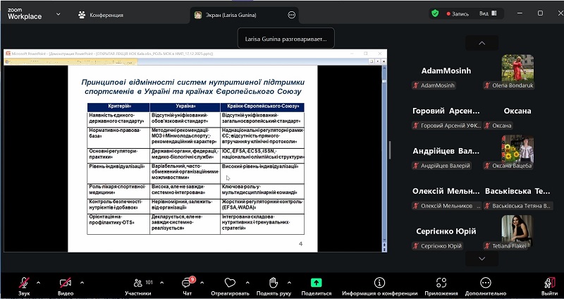 Тема першої лекції – «Роль МОК у створенні системи нутритивно-метаболічної підтримки процесу підготовки спортсменів» – викликала значний інтерес у здобувачів та науково-педагогічних працівників.