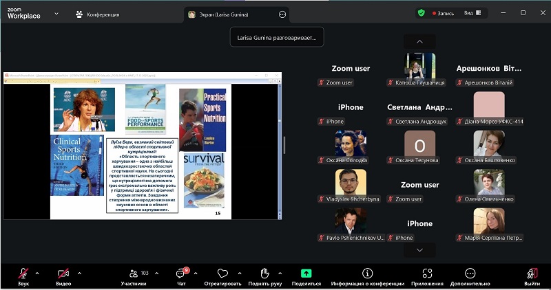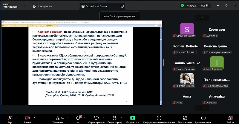 The speaker of the event was Larysa Gunina-Orlova, Doctor of Biological Sciences, Professor of the Department of Health Technologies and Physical Culture and Sports Rehabilitation of the State Tax University, a well-known scientist and practitioner who worked for many years at the National Anti-Doping Center of Ukraine. L.M. Gunina-Orlova is the author of more than 500 scientific papers, including 17 monographs, and took a direct part in the training of athletes of children’s, youth and elite sports – prize-winners of the Olympic Games, championships of Ukraine, Europe and the world.