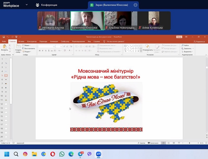 On February 21, Ukraine and the world celebrate International Mother Language Day. Mother language is the source of life for the people, the genetic code and spiritual heritage of every nation. On the occasion of the holiday, first-year students of the Faculty of Social and Humanitarian Sciences (groups 1UML ZL, 1UML RP, 1UML AM) and the Faculty of Physical, Mathematical, Computer and Technological Education (groups 1TST, 1IF, 1EN, 1MA, 1T) took part in the linguistic mini-tournament “Mother language is my wealth!” (teacher – associate professor of the Department of Ukrainian Language and Journalism V. Yunosova).