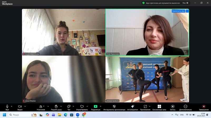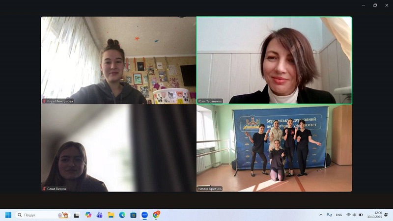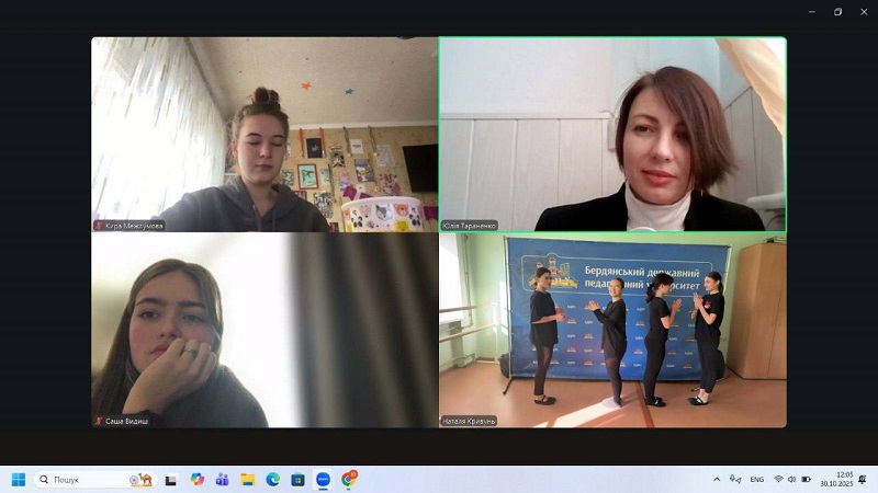 The class was held in a mixed format — simultaneously online and in person. Associate Professor, Candidate of Pedagogical Sciences, Head of the Department Yulia Taranenko carried out the educational process remotely, and Senior Lecturer of the Department, Deputy Dean for Educational Work of the Faculty of Physical Education and Sports, Natalia Kryvun worked with students directly in the classroom in Zaporizhzhia. The synergy of the teachers greatly inspired the students to be creative and active in class.