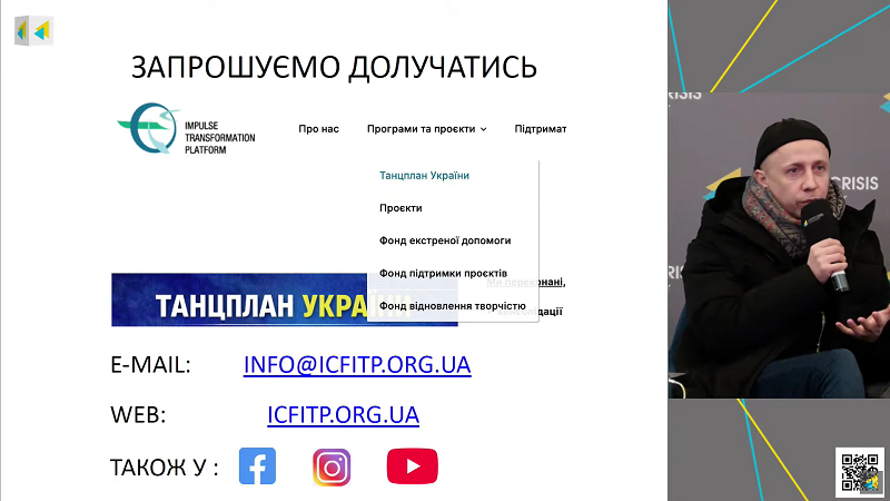 Last week, a press conference presenting the “DancePlan of Ukraine” initiative took place at the Ukrainian Crisis Media Center (Kyiv). Yuliia Taranenko served as a speaker, representing the temporarily relocated higher education institution — Berdyansk State Pedagogical University.