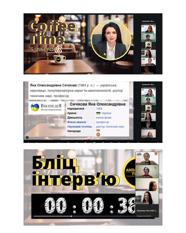 Модераторка зустрічі магістрантка спеціальності 016 «Спеціальна освіта» Олександра Делічобан, приготувала цікаві питання і розмова вийшла такою, яку неможливо запланувати — живою, відвертою і дуже щирою. Гостя поділилася історіями зі свого професійного шляху, розповіла про те, що надихає, що підтримує у складні моменти та як маленькі мрії з часом перетворюються на великі досягнення.