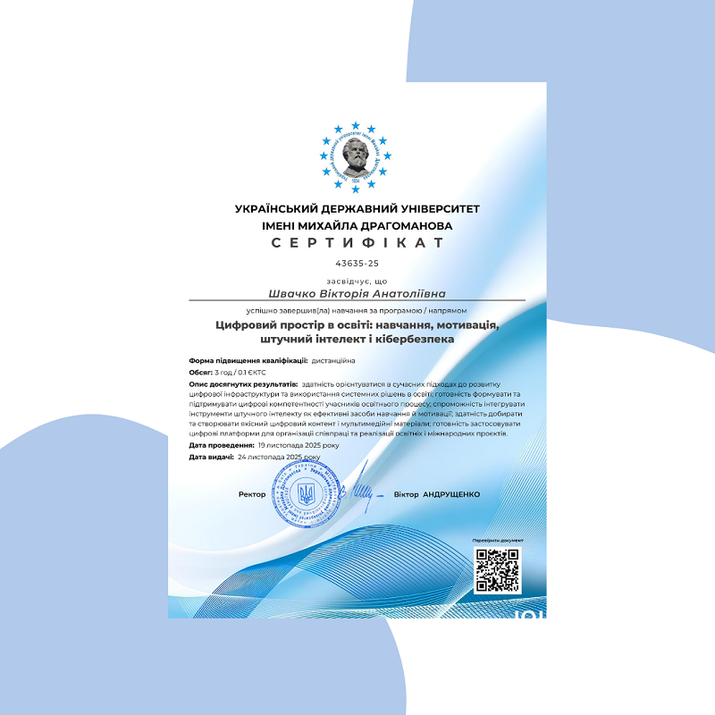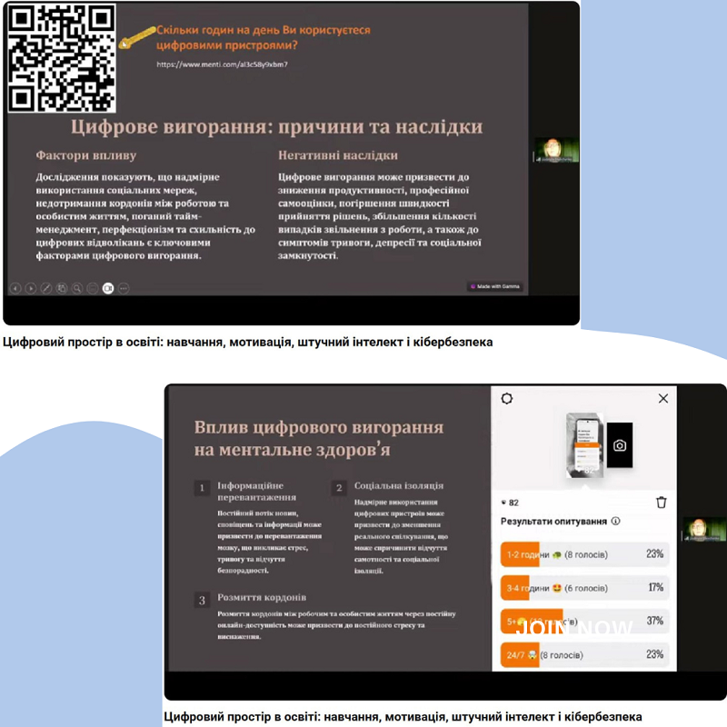 - виклики ментального здоров’я: ми усвідомлюємо ризик цифрового вигорання (інформаційне перевантаження, розмиття кордонів). Тому цифрова гігієна та здорові межі використання технологій стають обов’язковою частиною навчання.