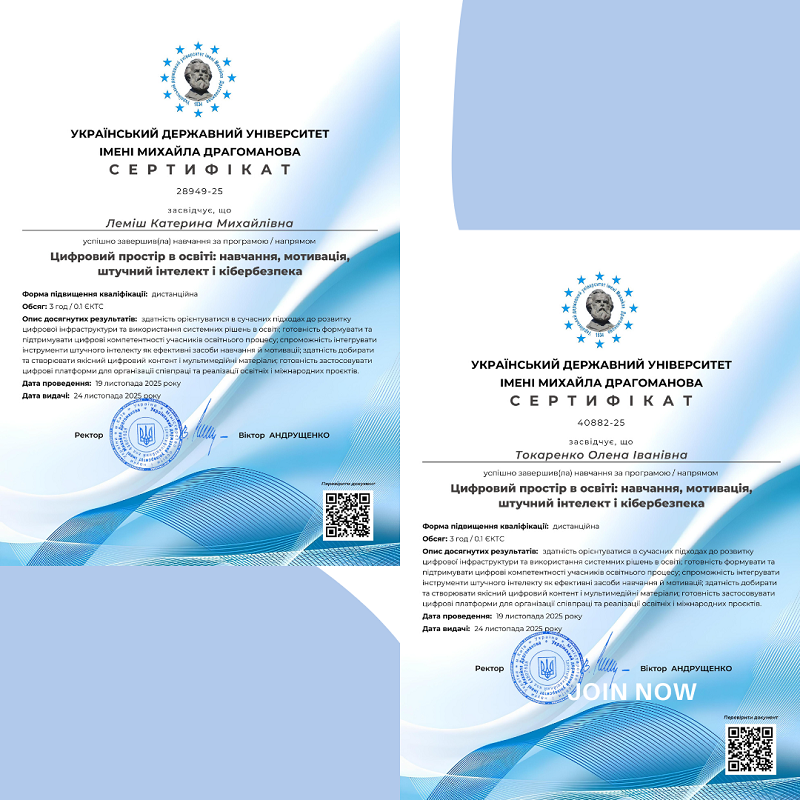 - Персональні траєкторії: забезпечення неперервного навчання для здобувачів, що евакуювалися чи перемістилися.