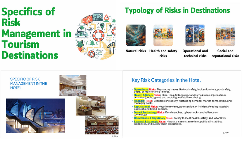 The webinar program included an analysis of the concepts of crisis, threats, and risks in the tourism and hospitality sector; consideration of the specifics of risk management in tourism destinations and the hotel business; and the features of risk management in the organization of event activities based on practical case studies.
