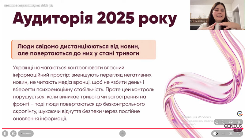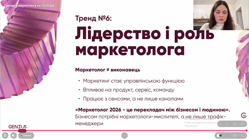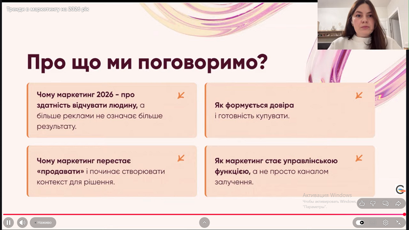 Здобувачі вищої освіти та науково-педагогічні працівники освітньо-професійних програм «Менеджмент готельного, курортного та туристичного сервісу», «Менеджмент організацій» та «Менеджмент» взяли участь у вебінарі від компанії GeniusSpace на тему «Тренди в маркетингу на 2026 рік».