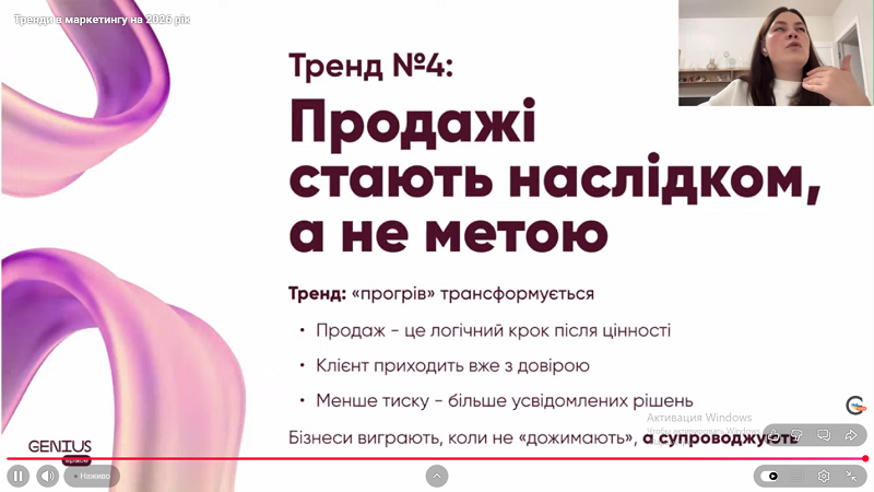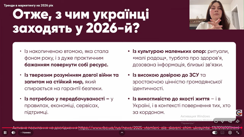 The webinar focused on the analysis of current marketing development trends and the forecasting of key changes that will shape brand strategies in the coming years. Particular attention was paid to the transformation of marketing approaches, specifically the shift from manipulative influence tools to building trust, creating values, and establishing sustainable relationships with target audiences.