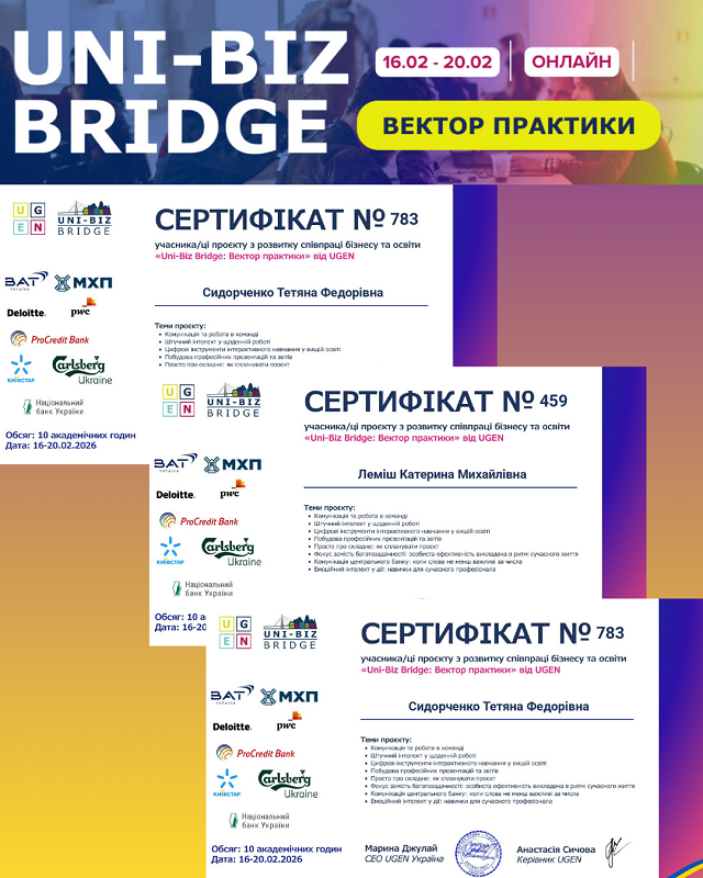 Modern higher education is increasingly viewed not only as a source of profound theoretical knowledge but also as the ability of graduates to quickly adapt to the demands of the real economy. At Berdyansk State Pedagogical University, active work is underway to update and improve educational programmes. One of the key stages of this process was the participation of the academic staff in the large-scale nationwide project «Uni-Biz Bridge: Practice-Oriented Vector».