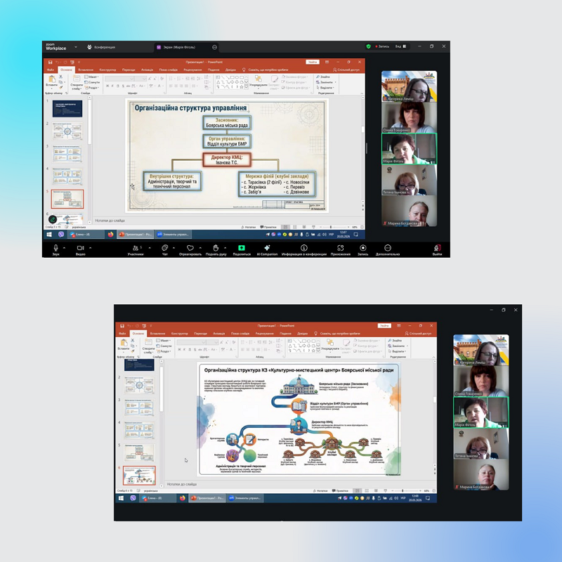 During the meeting, the results of a comprehensive analysis of the institution’s activities were presented, including its organizational structure, key areas of work, regulatory framework, and management specifics in the context of martial law. The presentation demonstrated the students’ ability to conduct a systematic analysis of cultural institutions and formulate well-grounded conclusions regarding their development.