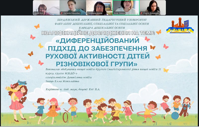 Захист є кульмінаційним етапом навчання в магістратурі, своєрідним іспитом зрілості, коли майбутні фахівці демонструють не лише глибину власних знань, а й здатність творчо та критично осмислювати проблеми сучасної дошкільної педагогіки. Проблематика, яку досліджували магістри, широка і різноманітна: від переосмислення класичних проблем дошкільної педагогіки («Педагогічні умови естетичного виховання дітей дошкільного віку за системою К. Орфа», «Виховання дітей на основі філософсько-педагогічної спадщини Г. Сковороди». «Розвивальне середовище в педагогіці М. Монтессорі» тощо) до методичного забезпечення трендових («Удосконалення цифрової комунікації з батьками засобами SMM-стратегії». «Розвиток творчих здібностей дітей засобами фуд-арт дизайну». «Теренкур як метод оптимізації рухового розвитку», «Формування у дітей уявлень про раціональне харчування» тощо).